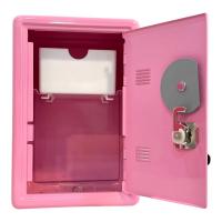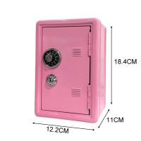 1.外觀是以粉體烤漆完成2.附有旋轉數字鎖與圓形鎖頭+2支鑰匙3.上方有ㄧ投幣孔,硬幣從上方投入後會儲存在內部塑膠盒子4.產品底部貼有開啟之說明5.產品尺寸:12.2*11.0*18.4(高)公分包裝: 每PC入塑膠袋再入彩盒才積: 24個/2.8'才/14.8/15.8公斤